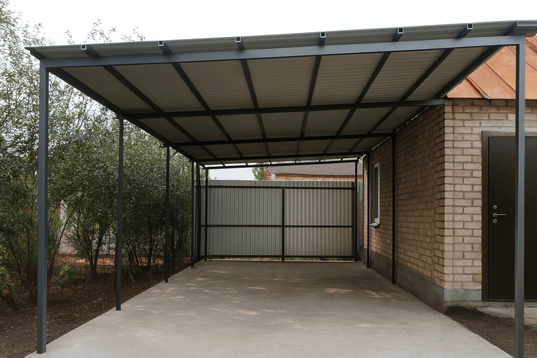 Навес для автомобиля из профильной трубы — это функциональное и прочное решение для защиты транспортного средства от осадков, солнца и ветра. Конструкция отличается долговечностью и возможностью адаптации под особенности площади участка и предпочтения заказчика.