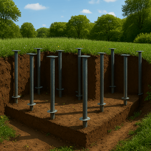 Свайно-винтовой фундамент — это надежное решение для небольших и просторных объектов, особенно при сложных грунтах и высоком уровне грунтовых вод. Мы предлагаем строительство свайного фундамента под ключ с соблюдением всех технологических требований и СНиП.